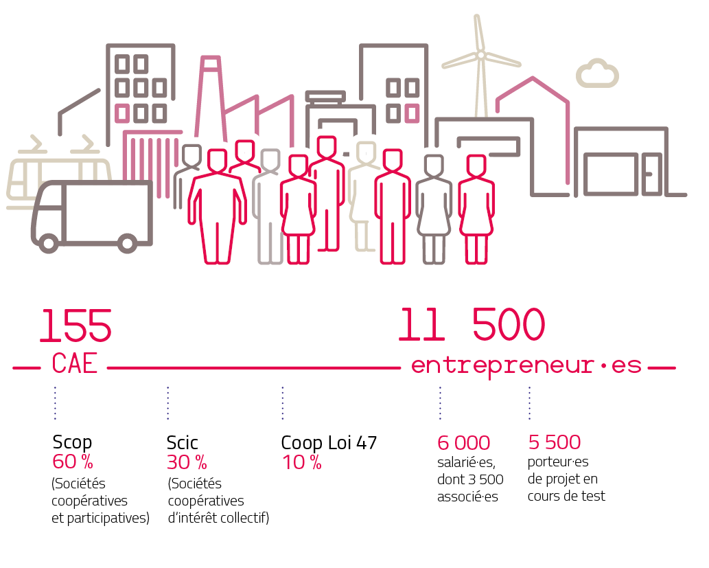- Nombre de CAE : 153 (60 % en Scop, 30 % en Scic, 10 % en Coopérative loi de 1947)