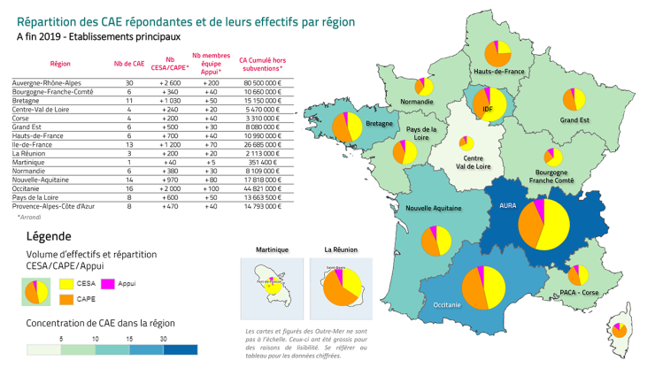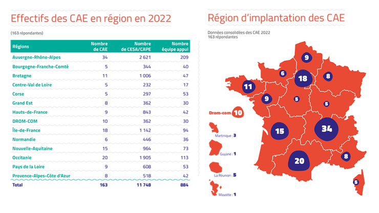 - Nombre de CAE : 163, implantées dans 14 régions françaises